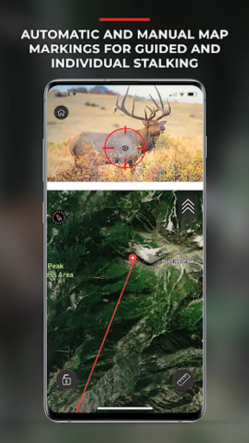 Use visual tools to guide you through the terrain to the trophy - With this incredible moose, mountain goat, elk and deer hunting app, you will always have a hunting map in your pocket. Use the visual tools and guide yourself through different terrain to reach your trophy mark. With the pro features, you can also share the marked map locations with other hunters in your group.