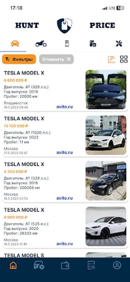 Our application allows you to be one of the first to receive information about the publication of the required ad on the portals according to your parameters and requirements, price, and conditions.