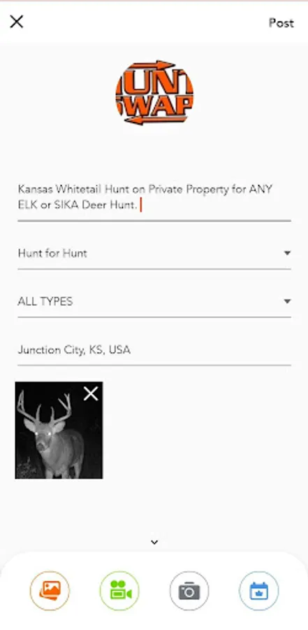 FINALLY the peer to peer solution for hunters seeking to fill their dream tags without having to break the bank on an outfitter is here, and its free! HUNT SWAP offers the unique ability to swap through hunt for hunt, barter for hunt, gear for hunt, or if desired an outright purchase. Offer a simple or all inclusive hunt. Highlight the hunt you are offering with photos and videos from your property in both your profile and posts. When users click your profile they will be met with what you are looking for, offering, and a little about you! To us "User friendly" means minimal filters and simple searches by location, species, or key words means related content will appear. Privacy and security is important to us and we acknowledge that scammers exist. For this reason posts have general locations. When users are ready they can exchange exact GPS pins through in app messaging. Do your research. Develop relationships among like minded people. Our communities feature gathers hunters so they swap without having to sort content that doesn't interest them. Have an upcoming event? Host it to draw maximum attention and participation. 1 click messaging allows you to send a bulletin to all interested in attending! Simply put, HUNT SWAP is putting your dream hunt right in your crosshairs