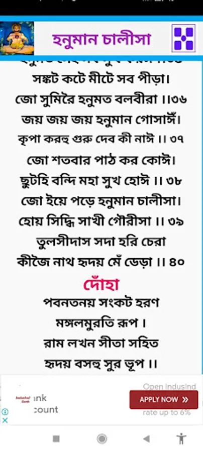 In this app, Hanuman Challisa has been completely converted into Bengali.