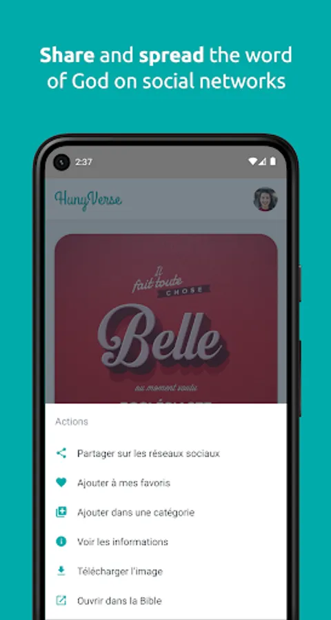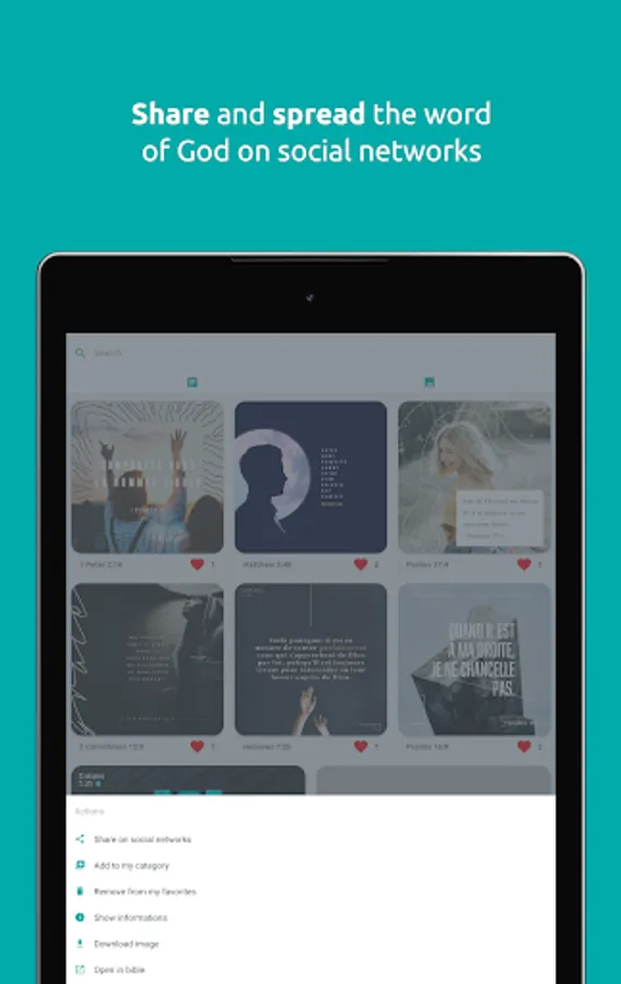 Discover and share millions of verses illustrated by beautiful pictures on social networks with just one click.