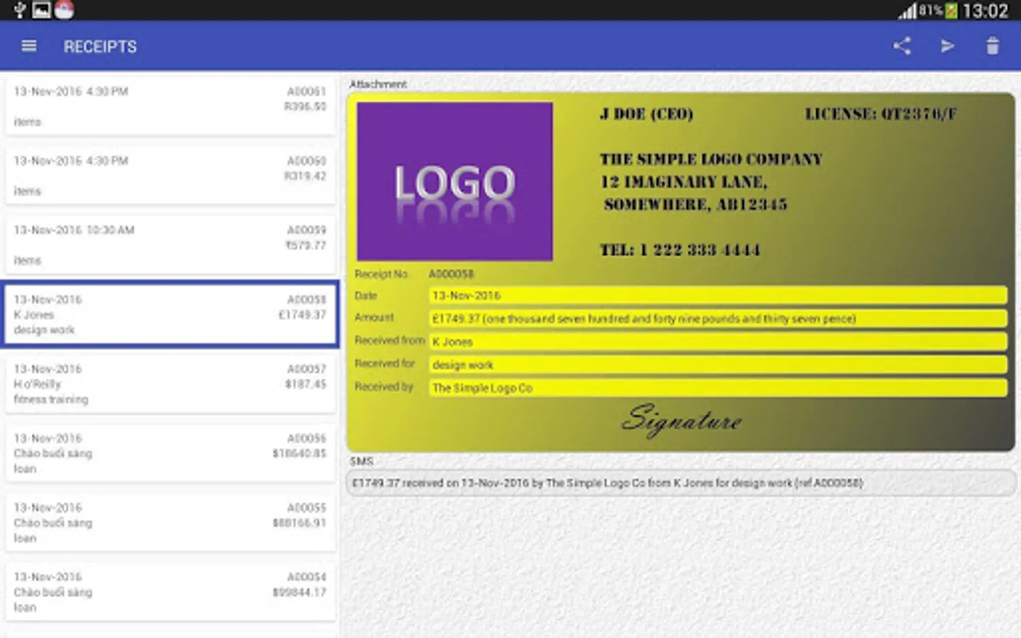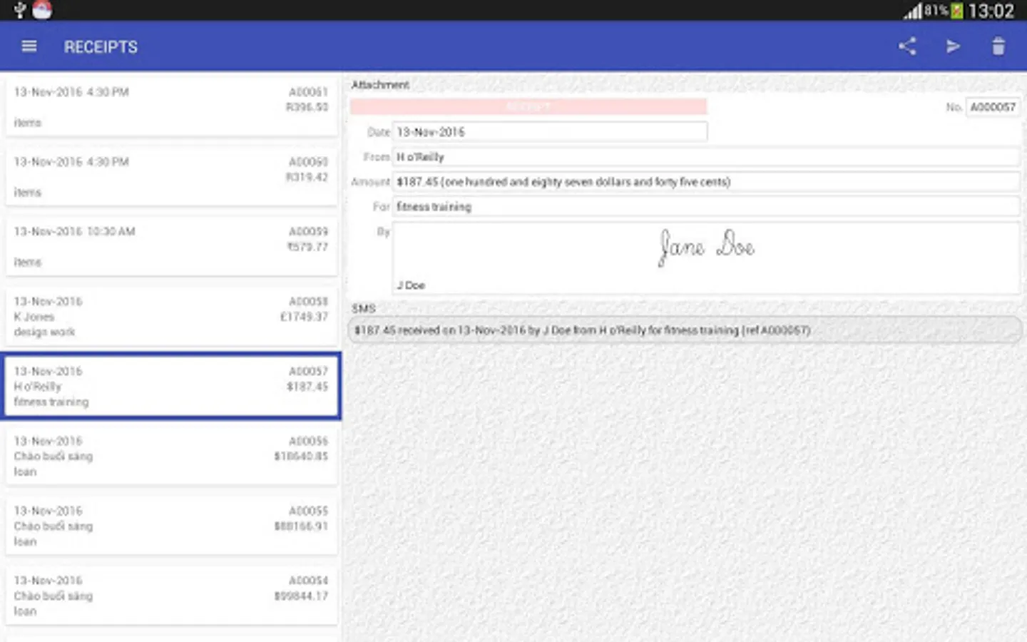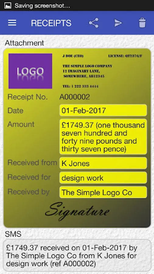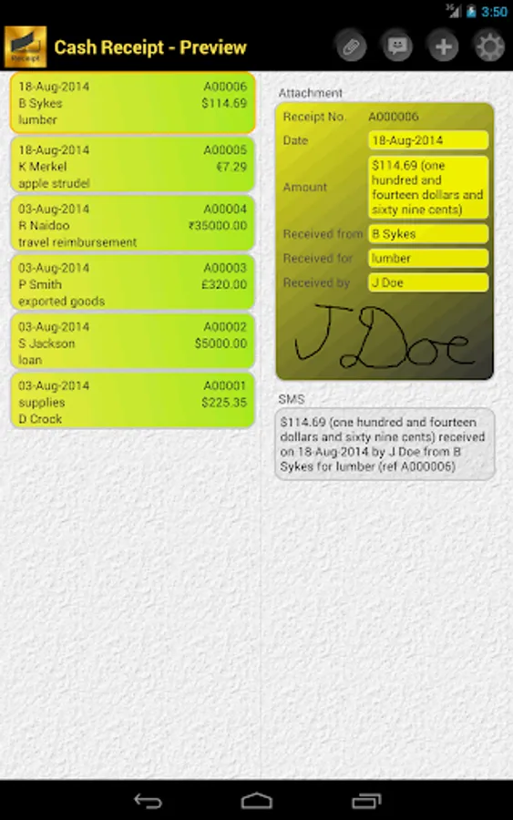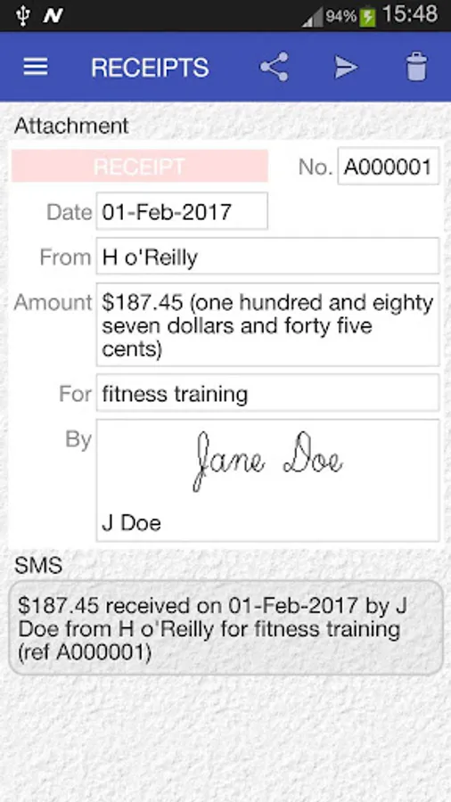 CREATE, STORE AND SEND RECEIPT FOR MONEY YOU RECEIVE
