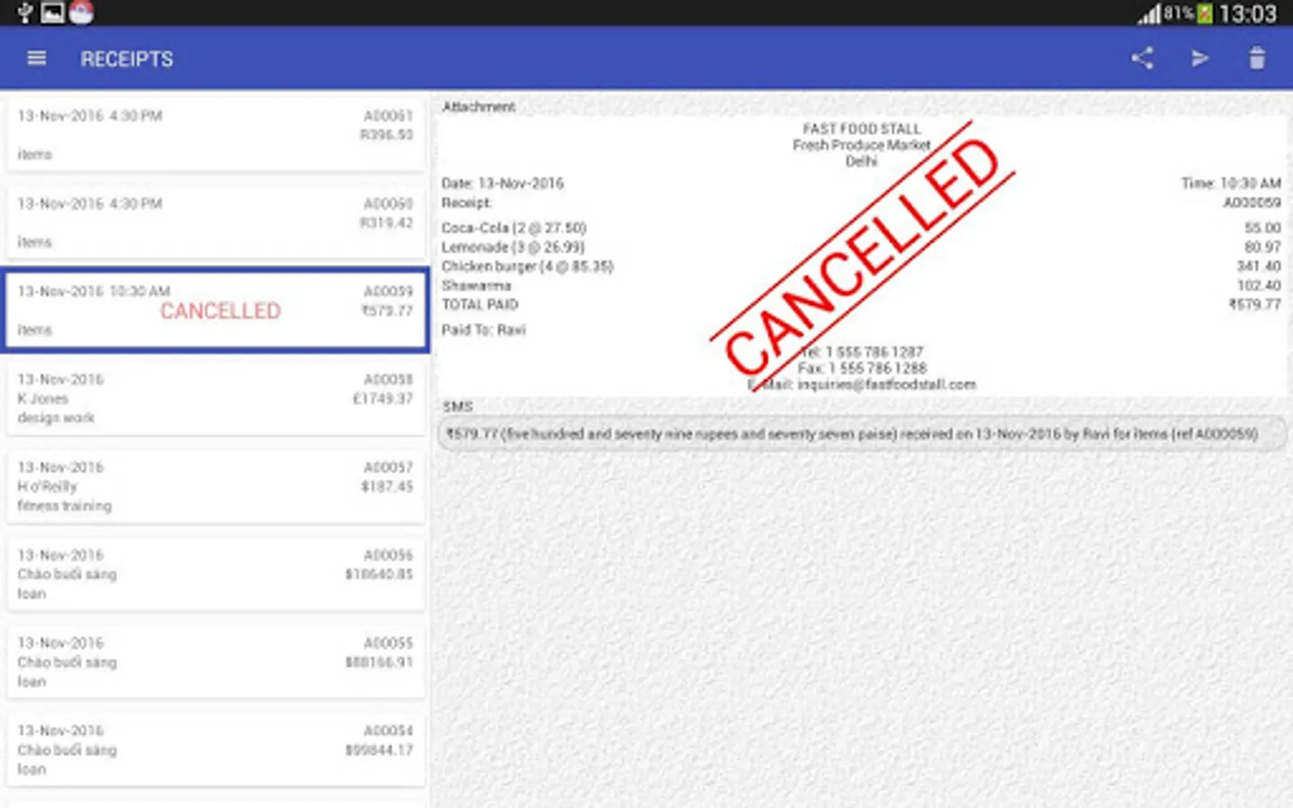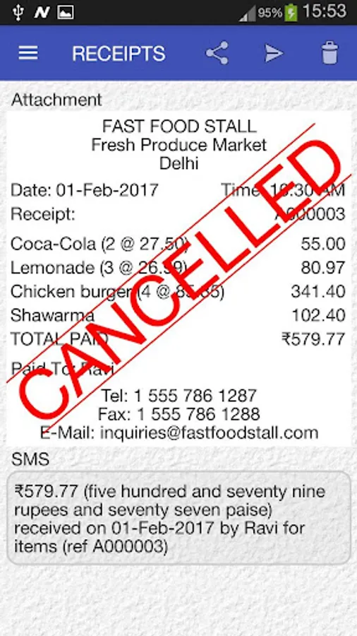 ■ Send receipts from within application