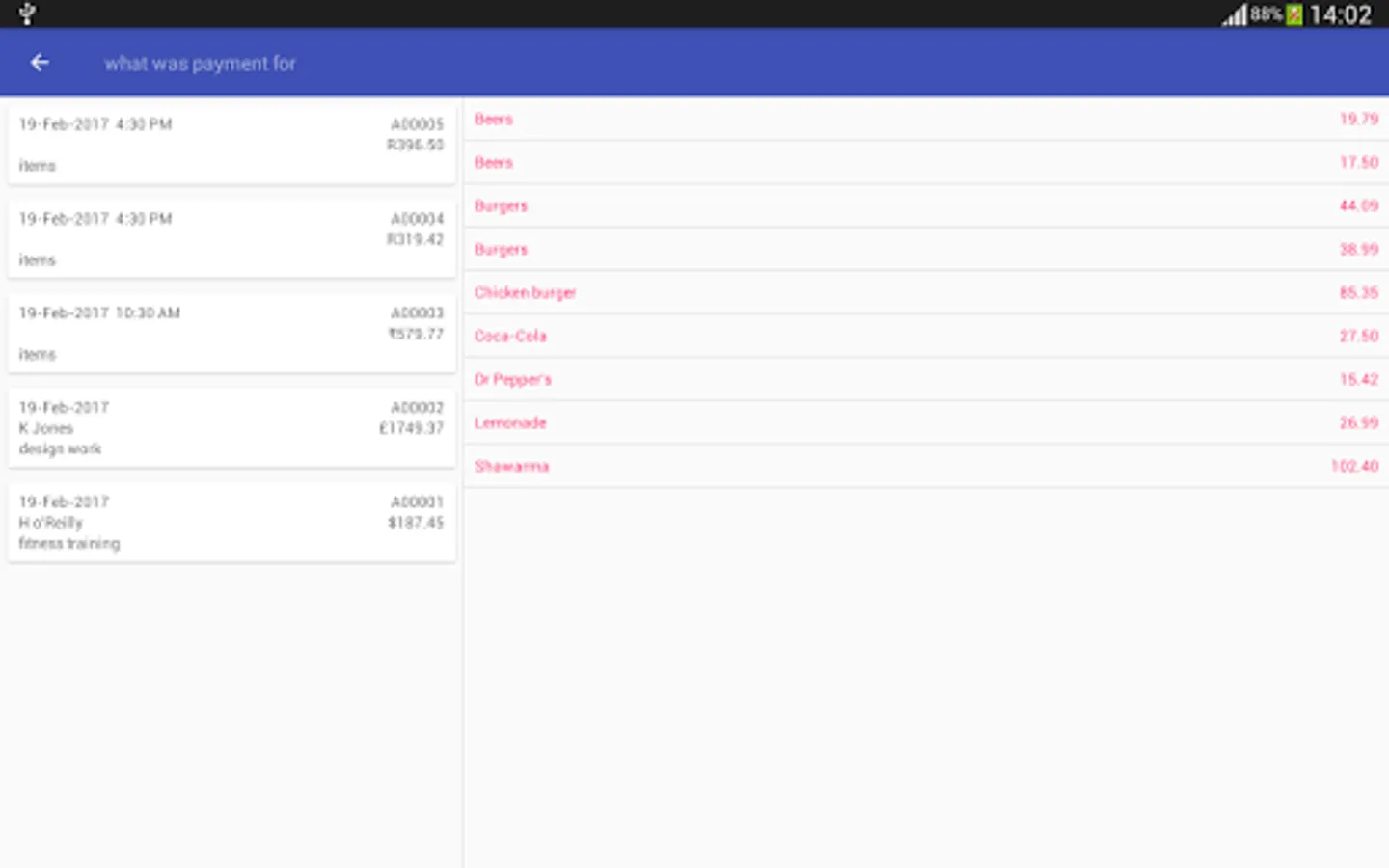 - if you typed "J" into the "Received for" field, then pressed the search icon, you would see "January Rent" in a list which you could tap on to select it