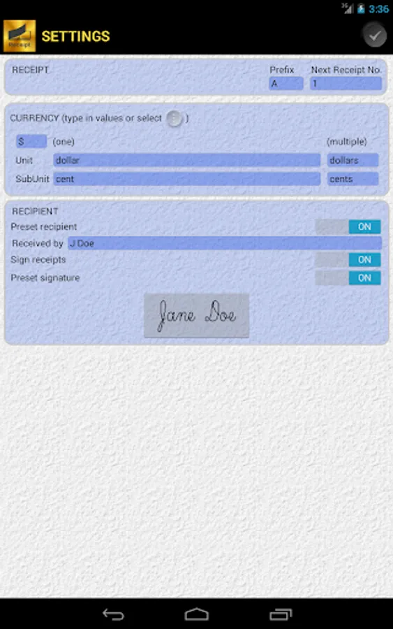 ■ Setup a preset signature or sign each receipt separately