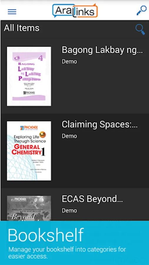 Note: Log-in credentials for this app are provided to each client school upon purchase of Aralinks eBooks.