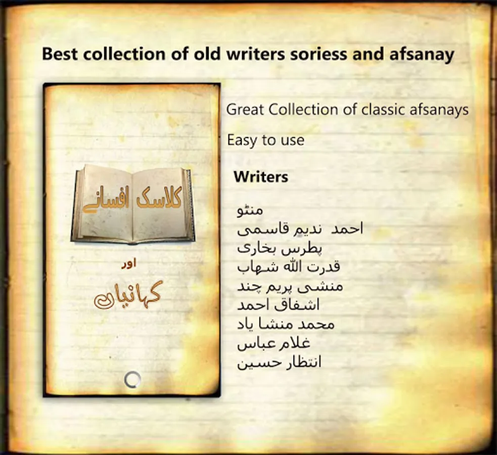 This app is very useful especially for those person those are interested in old died writers of Urdu literature.This app will help you to learn Urdu and improve your Urdu reading skills.