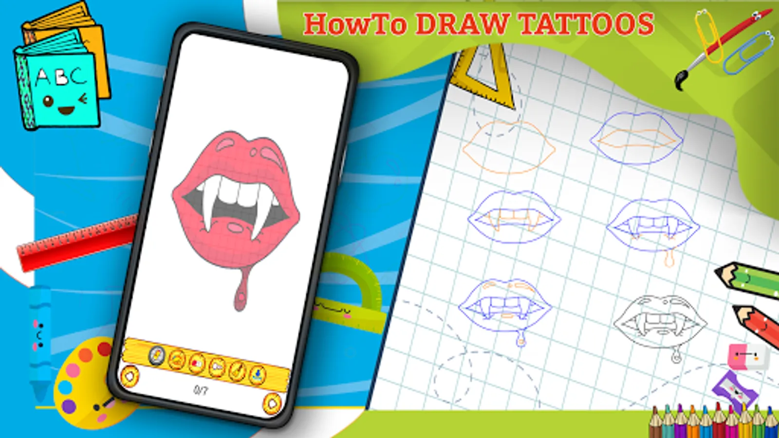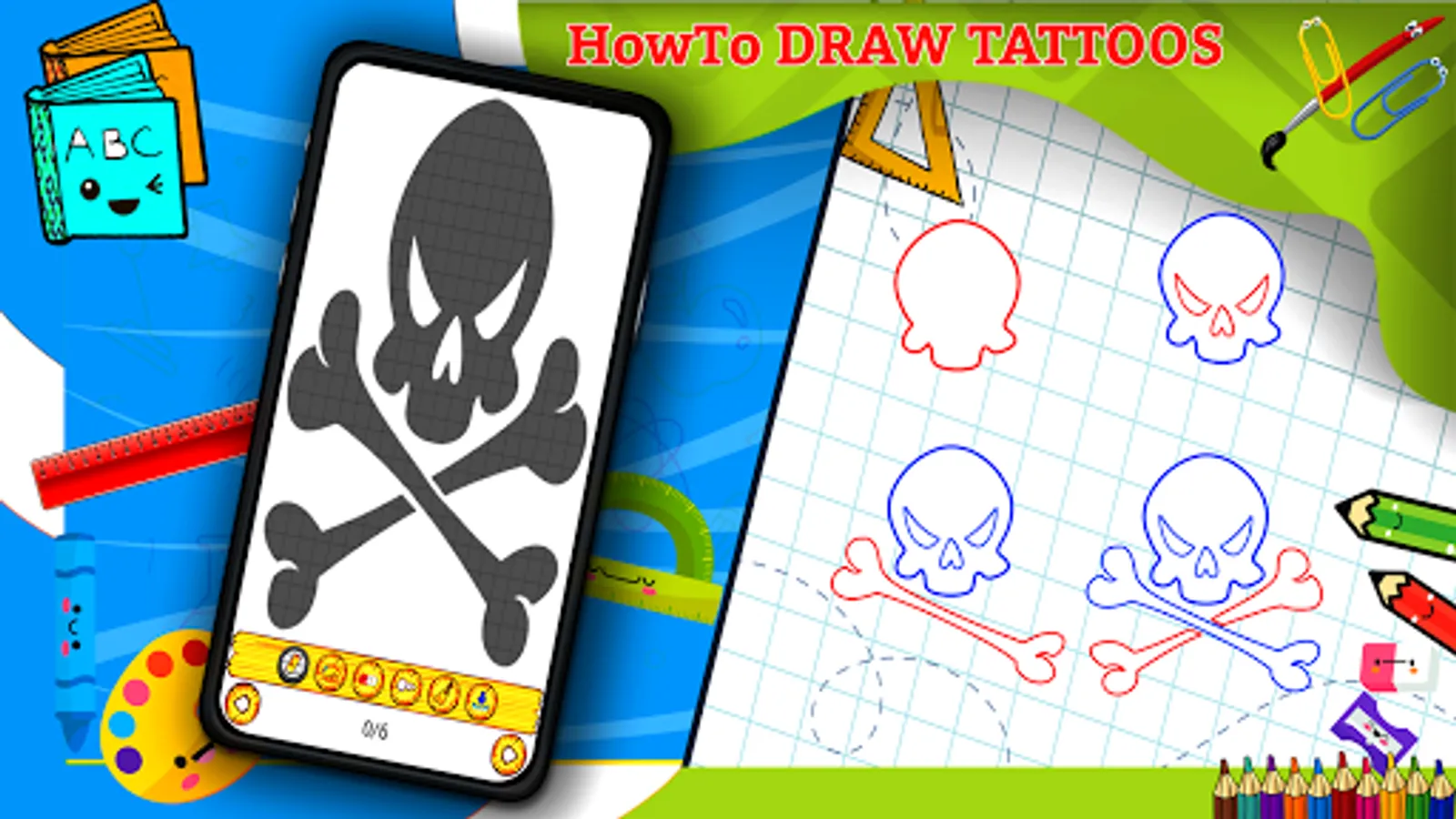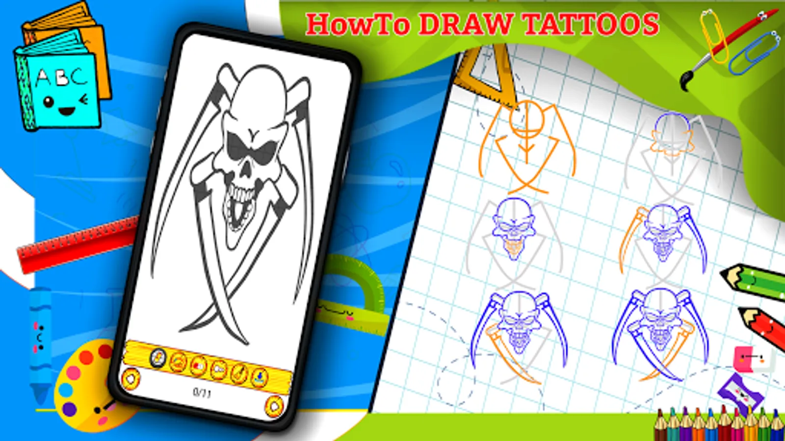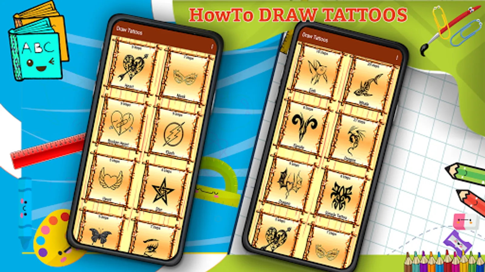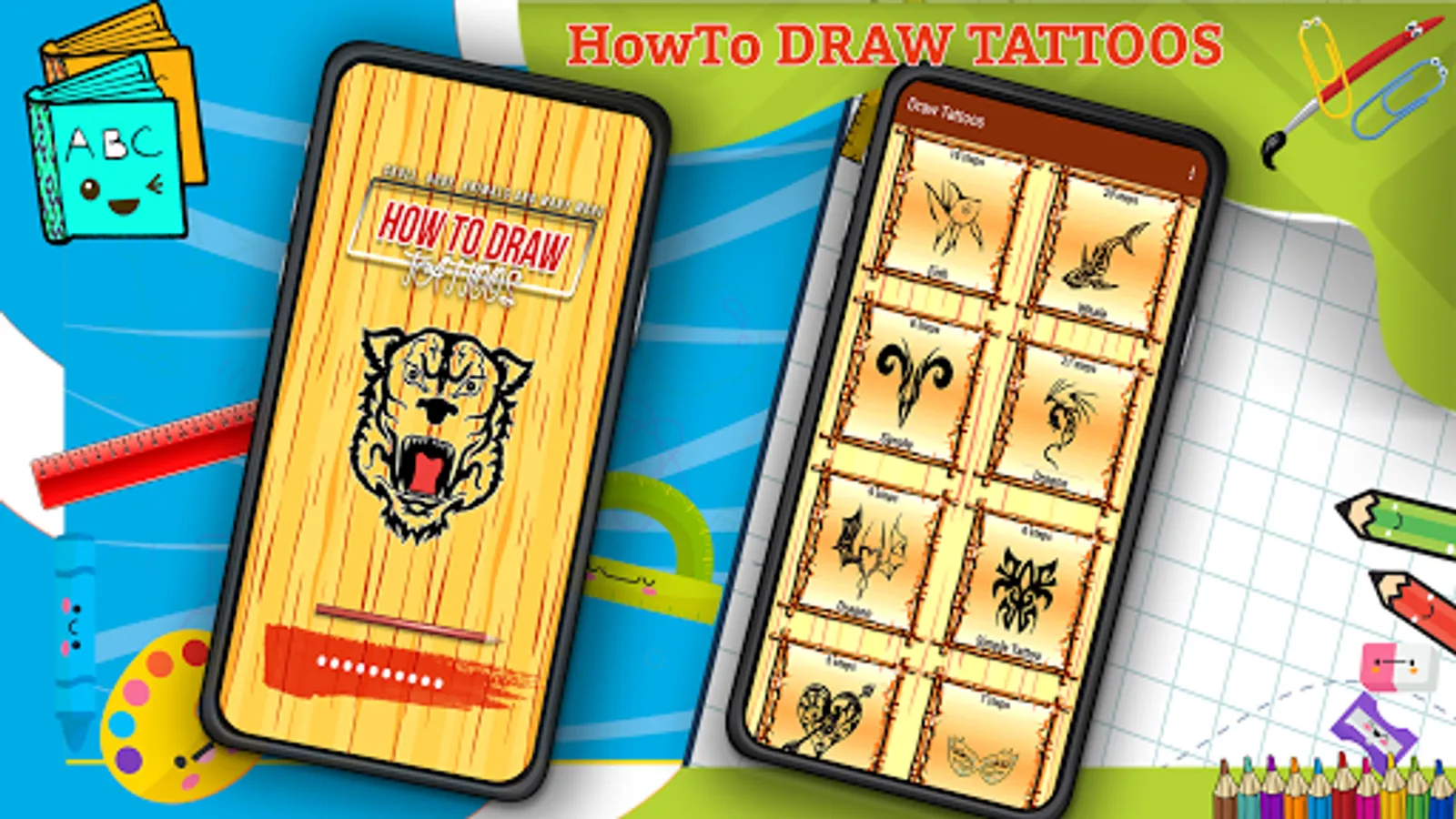 How to Draw Tattoos will teach you how to draw different types of tattoos and create your wonderful design. Draw Tattoos app contain best collections of tattoos shapes, its very easy to use and learn very quickly.