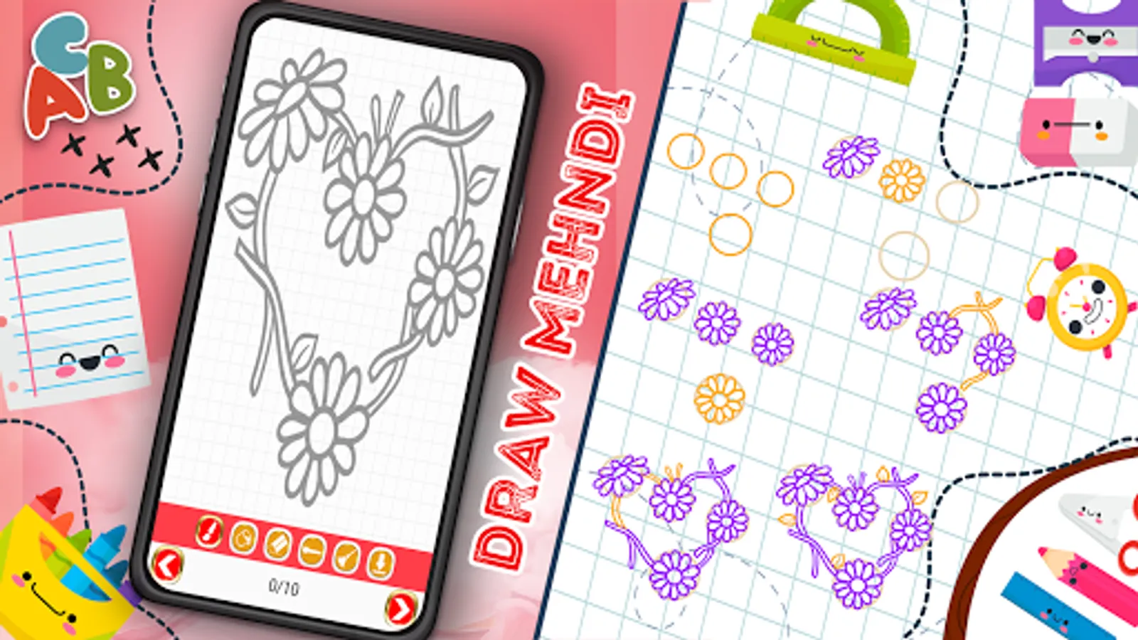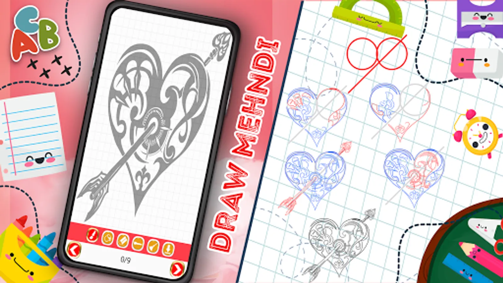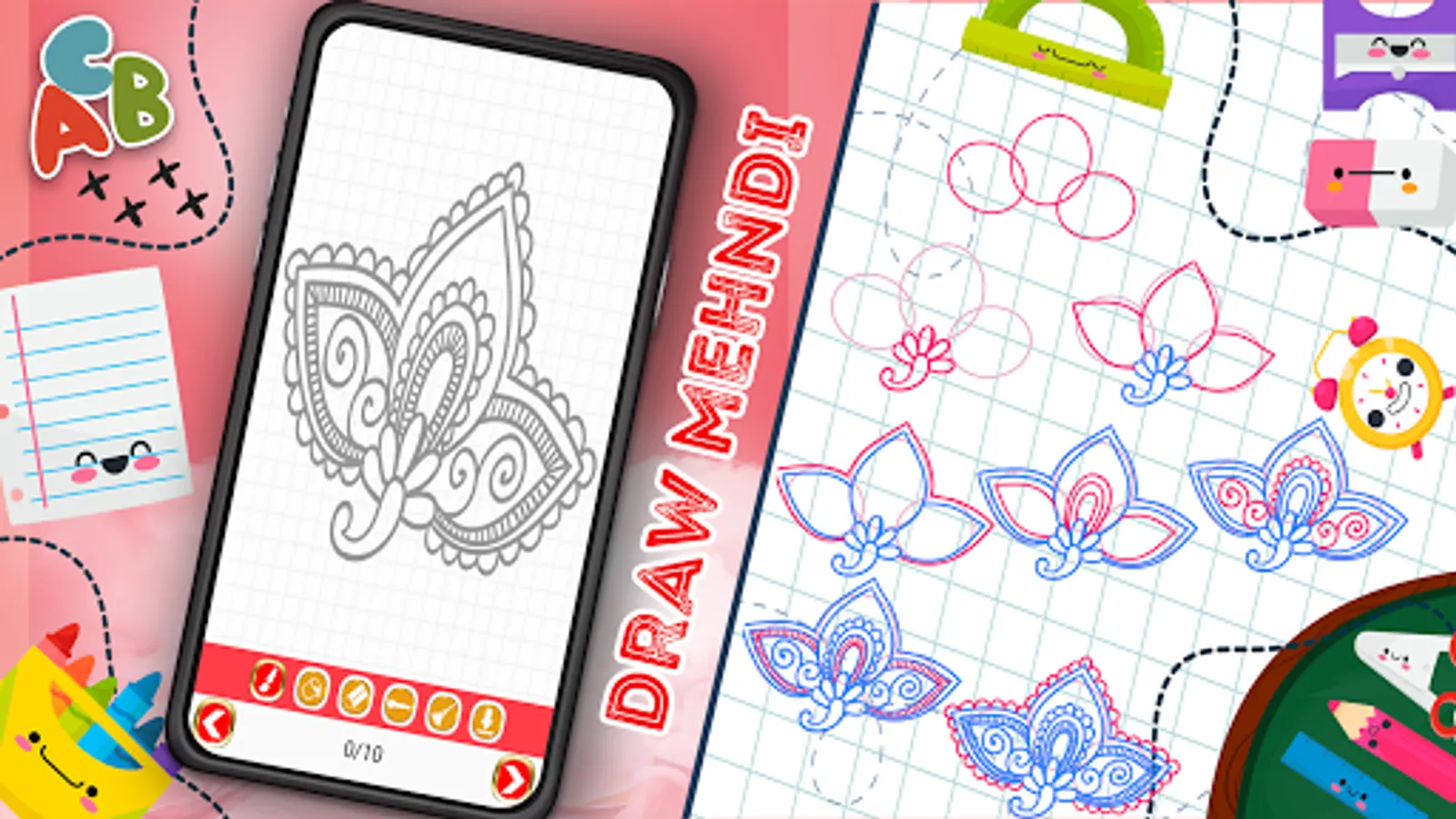 How to Draw Mehndi will teach you how to draw beautiful mehndi designs. How to Draw Henna app contain best collections of mehndi sketches, its very easy to use and learn very quickly.