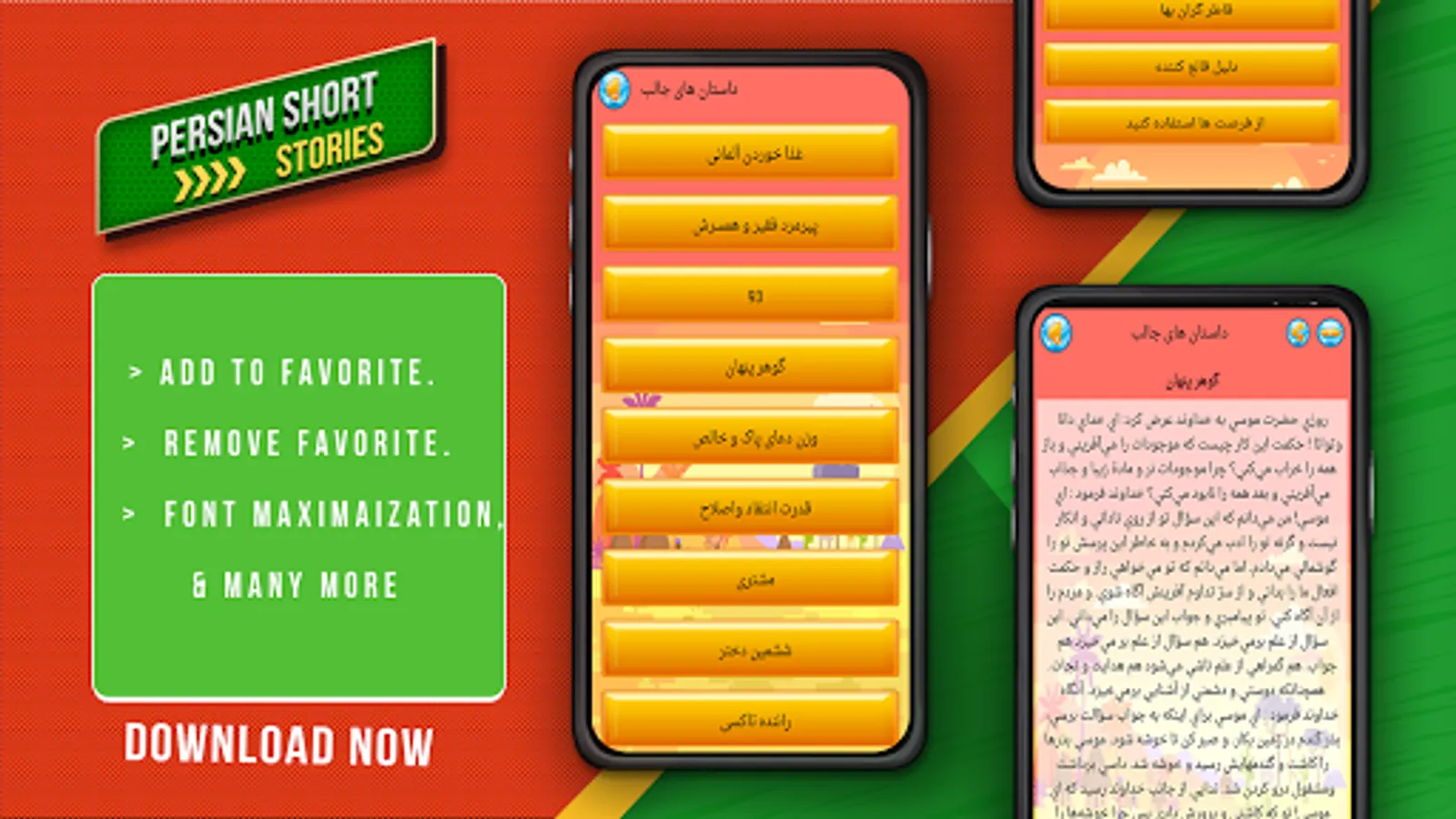 Persian stories is a collection of short stories with wonderful moral lesson.In Farsi Stories user can experience the sign of innocence, love, adventure,moral and many more.