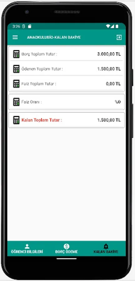 With AnaokuluBio Kindergarten Management Mobile Application, student parents can easily follow up their debt payments. Parents can easily see their students' debts and payments. It easily monitors total debt, total payment, total interest and remaining information.