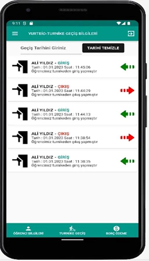 Another innovation for dormitories developed by Hursoft Software and Security Systems as of 2022 is the YurtBio Mobile Phone Application. With YurtBio, after the parents download our application to their mobile phones, they can instantly see and receive notifications of the student's entry and exit from the turnstiles in the dormitories. With the YurtBio Mobile Application, the student can track their debt payment, their entrance and exit from the turnstile, and the student can check their permission information. It is a great convenience for parents to follow up students with YurtBio Mobile Application, by receiving notifications via SMS.