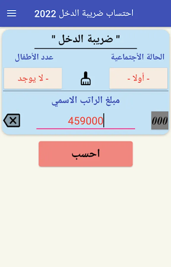 The application works on the income tax law currently in force in Iraq, through which the income tax imposed on the salaries of Iraqi state employees can be calculated quite easily and with high accuracy.