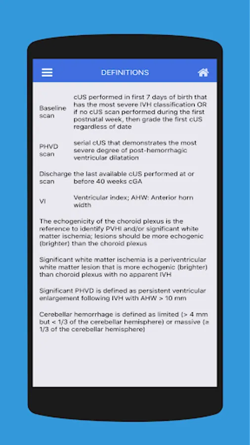 This application is based on a consensus viewpoint guideline developed by a taskforce of neonatologists and radiologists across Canada. The aim of the decision-making tool is to help with interpretation and reporting of consultative diagnostic ultrasound exams of the neonatal brain. The decision tree and brain injury scoring sheets are created to assist with the identification and recording of select imaging features in a uniform manner for benchmarking, auditing and quality improvement purposes.