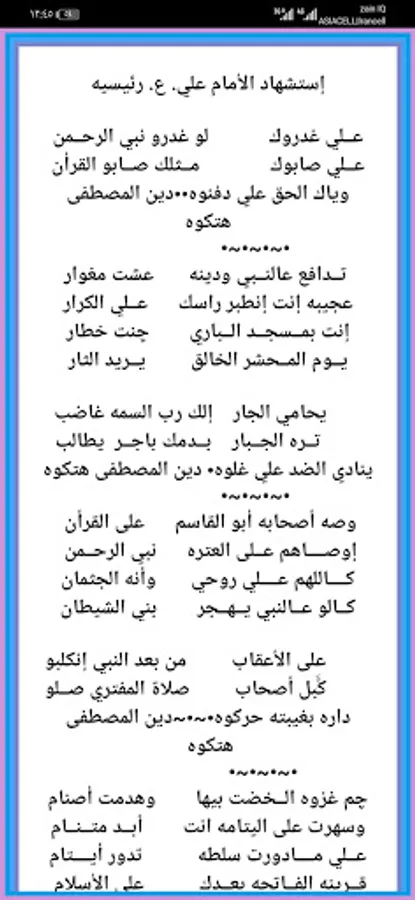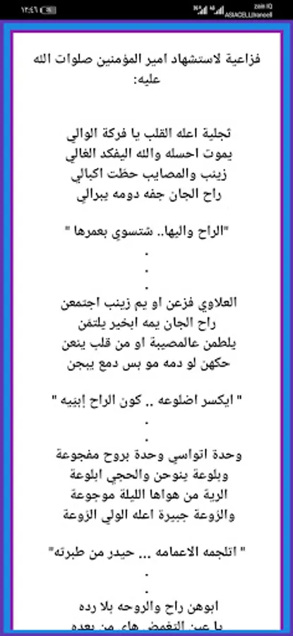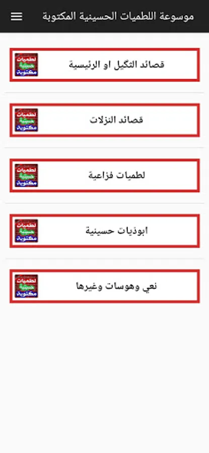 The application of the Husseiniya Written Encyclopedia of Lattamiyat - Poems - Buddhist features is characterized by modern design and fast interface and not occupying a large space in the phone memory and the application provides for written packages that are constantly updated without the need for an Internet connection.