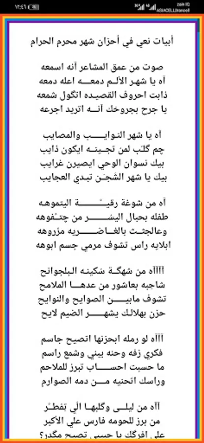The application of the Hussaini Litmiyat Encyclopedia of Written - Poems - Buddhist contains the largest collection of Lattamiyat, poems, Buddhists, and obsessions written by several poets, where they were organized into several sections, including Lattiyat al-Thakil or the main, poems of the infidels, Tmiyat al-Fazi’a, Hussainiyya Buddhists, obituaries, whispers, and others. The month of Muharram and the martyrdom of the Prophet, PBUH, and the martyrdom of Imam Ali, peace be upon him.