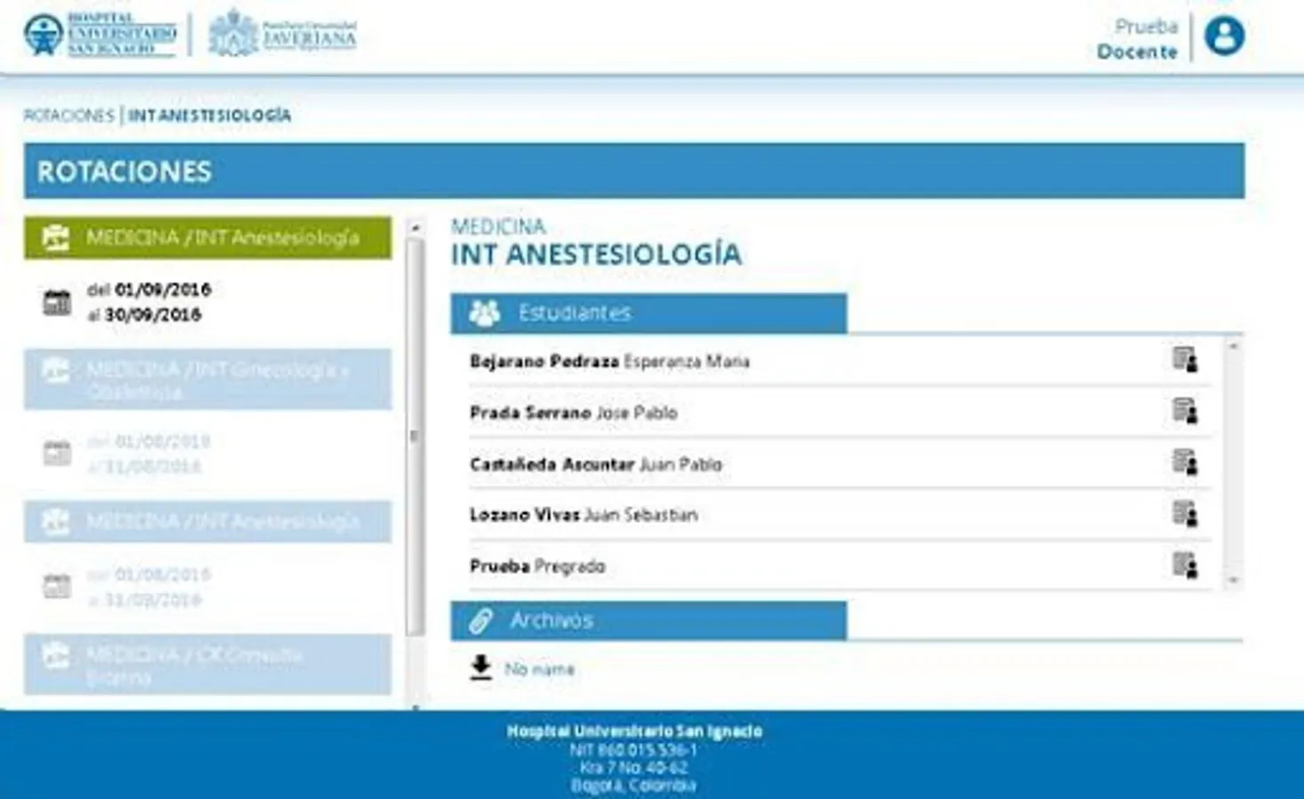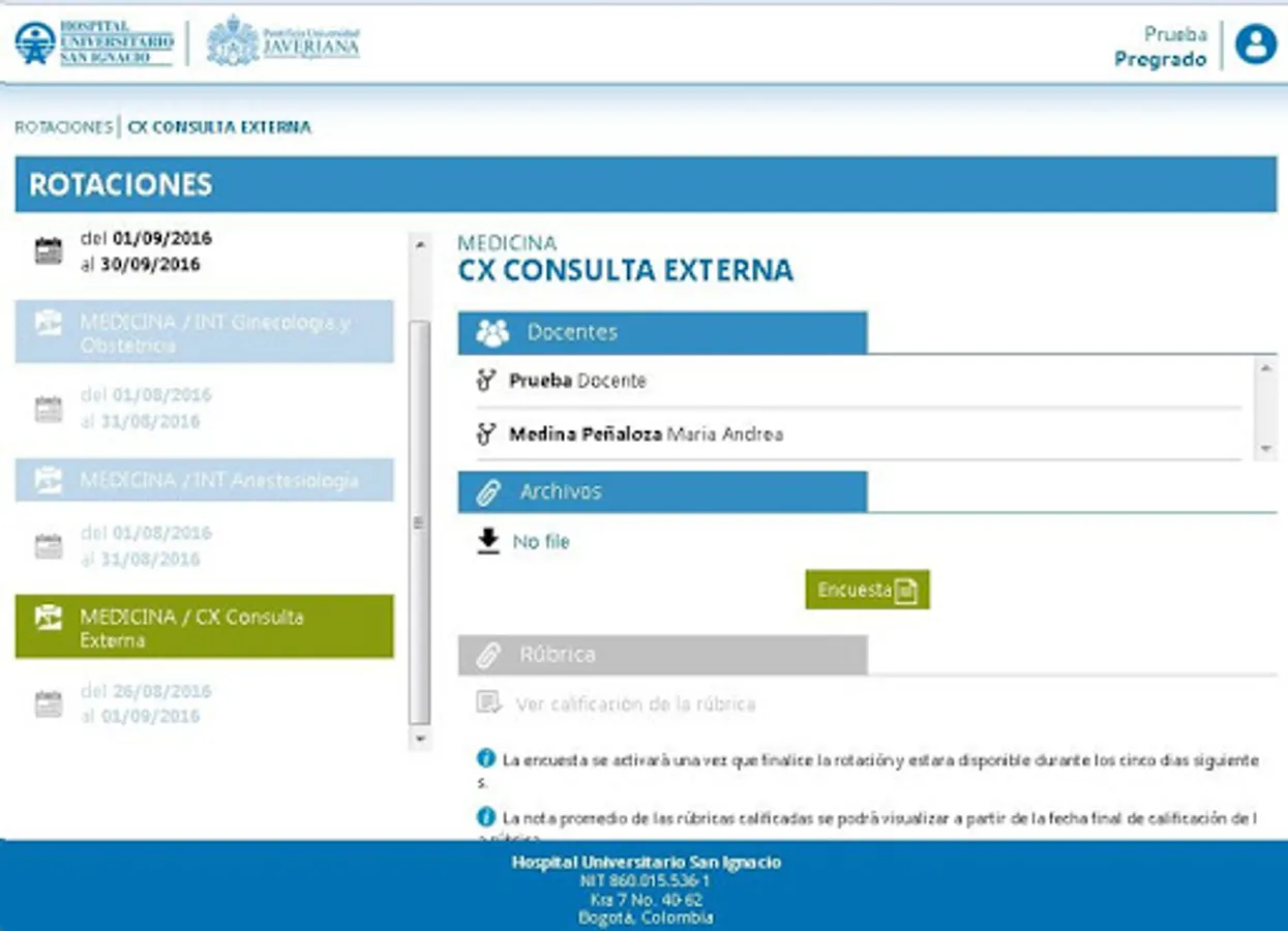 Technological solution that allows the control and management of the rotations and benefits established for the undergraduate students of medicine of the PUJ and the San Ignacio University Hospital