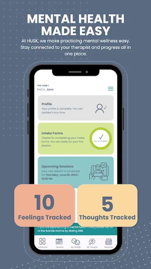 At HUSK, we make practicing mental wellness easy. Stay connected to your therapist and progress all in one place.