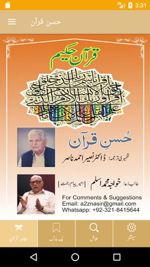 تدبُّر فی القُرآن اور تفکُّر فی الانفُس و آفاق، ادیانِ عالم کا تقابلی مطالعہ؛ سرطانی اداروں کے خلاف جہاد بالقُرآن؛ قُرآن کا تفسیری ترجمہ اور تفسیر نگاری۔