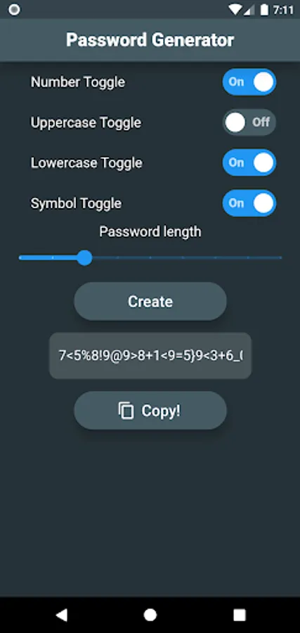 You can quickly create passwords with numbers, uppercase letters, lowercase letters and symbols.