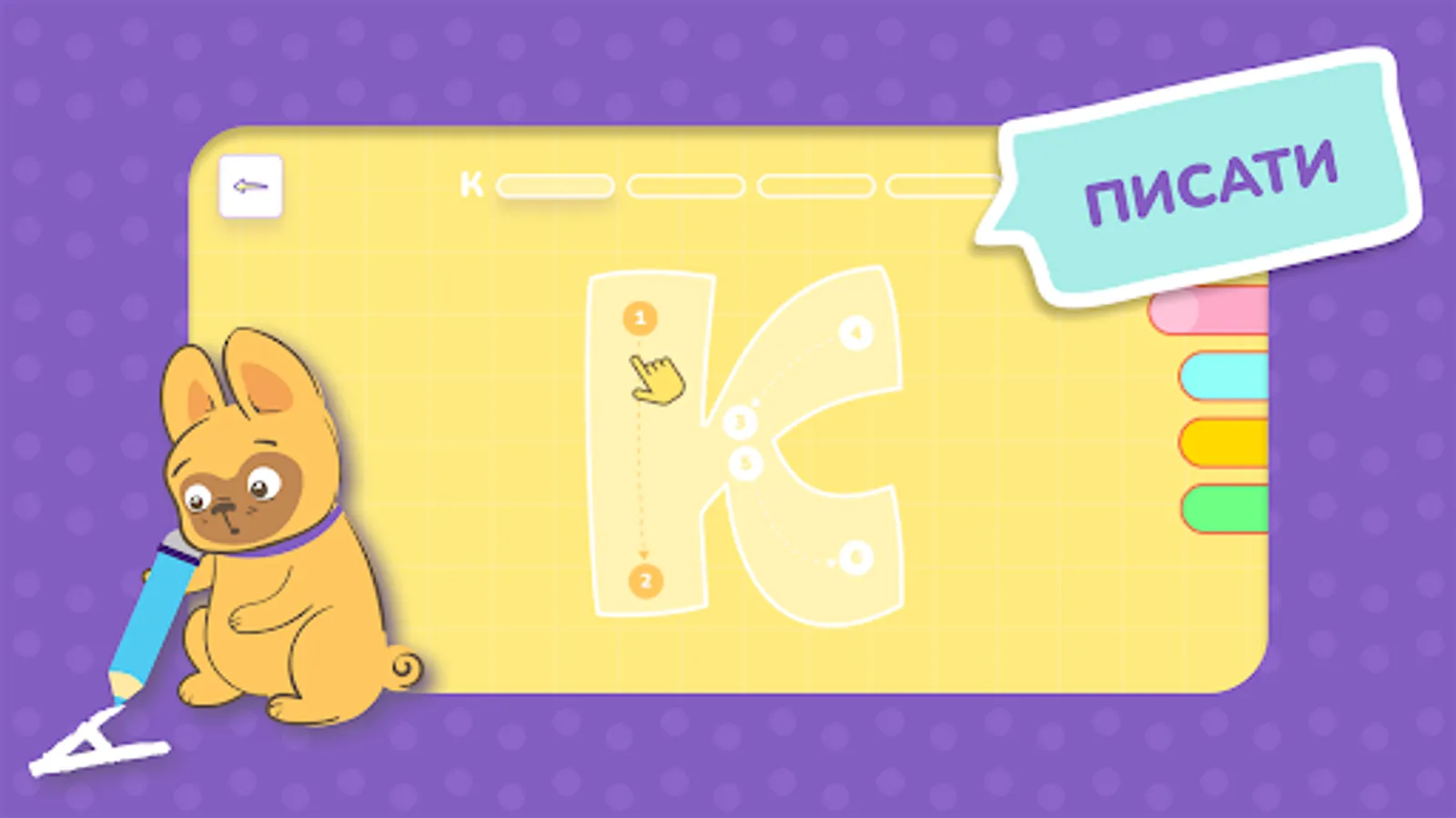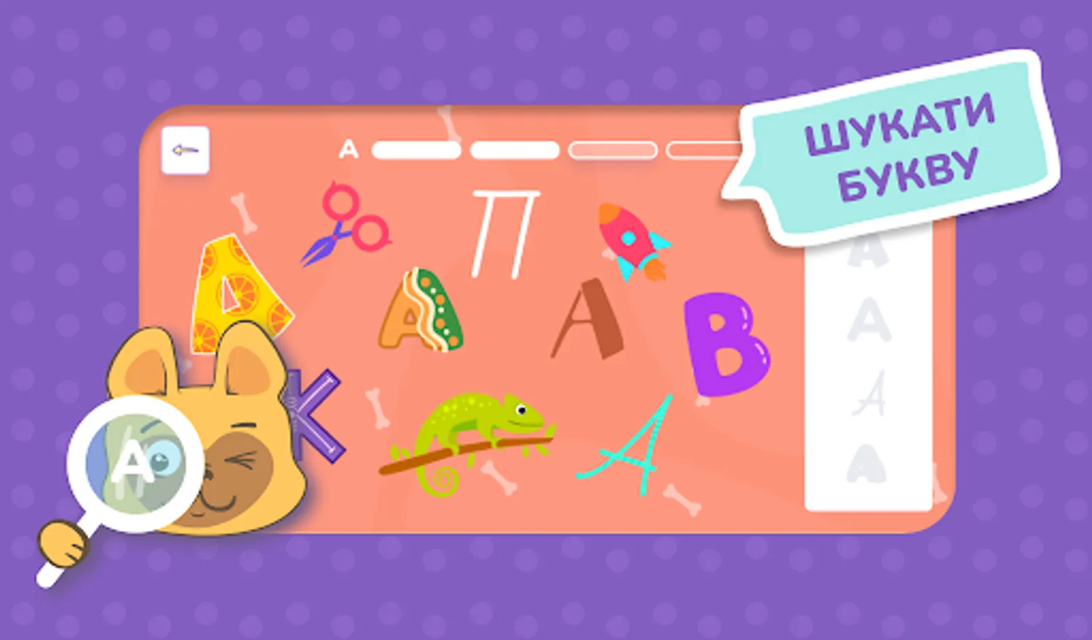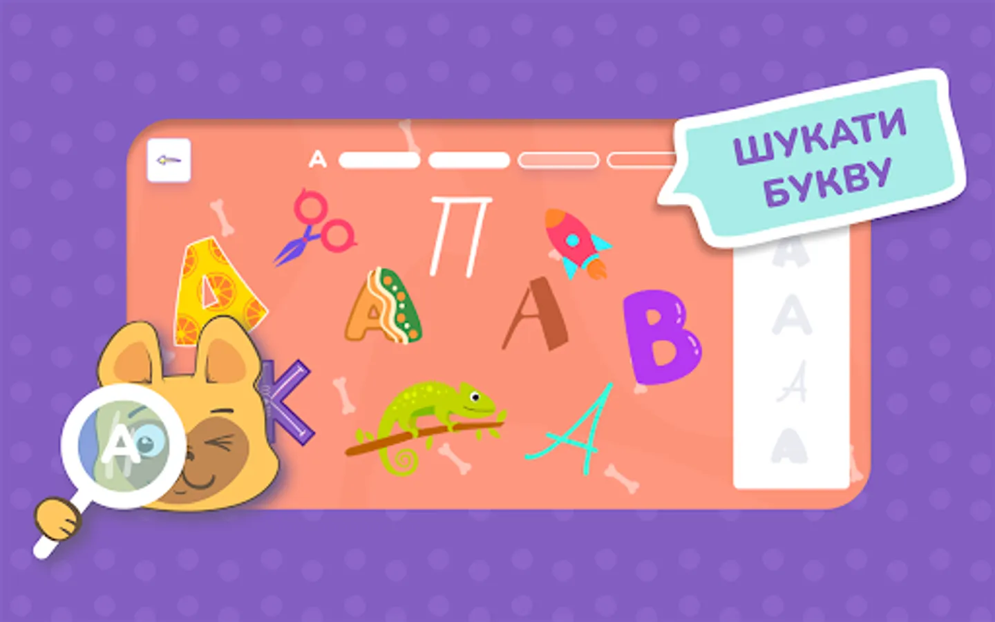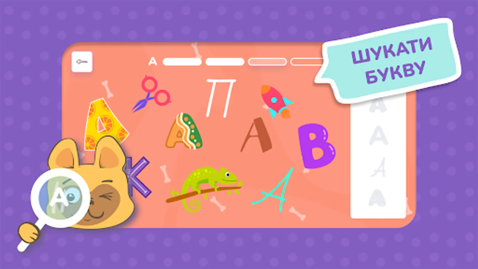 For each letter of the alphabet, there are four interactive games, with short poems at the end, by famous Ukrainian poets, such as Varvara Hrynko, Natalya Zabila, Hanna Rymar, etc. Games are based on the principle of maximum repetition. The letters of the alphabet are grouped according to school methodology, and we recommend that each group, after completing it in the "Study" tab, be trained in the "Play" tab.