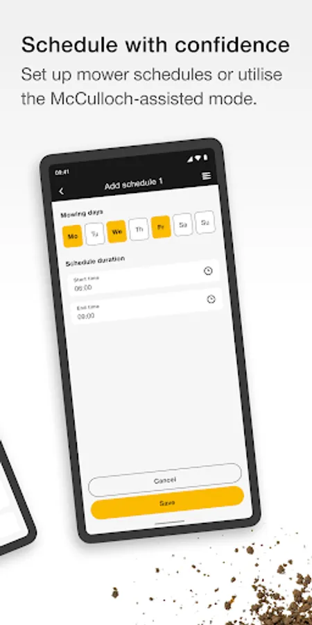 An intuitive way to tell ROB what to do • Intuitive and clear control interface direct from your smartphone • Gives you the ability to send instant mower commands i.e go home, start or finish mowing etc. • Easily manage ROB’s cutting schedule to fit around your needs and lifestyle.