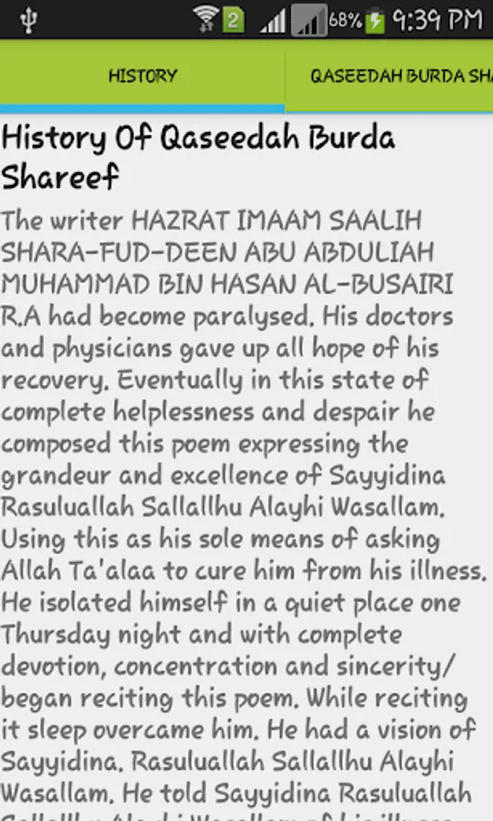 Official Qaseedah Burdah Shareef By Hafiz Muhammad Nadeem Qadri, Muhammad Affan Qadri, Muhammad Waseem Raza Qadr. This application contains start dua and end dua plus 10 Fasl.