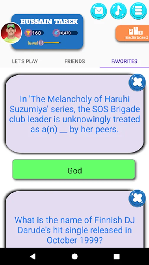 you can answer questions on your favorite category or play speed questions or the classic quiz.
