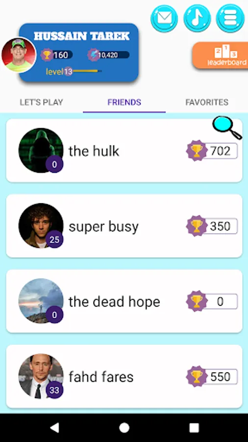 Every user has a profile page which contain details on his progress in the game. there is a leaderboard page to show the top players in the game and the ranking of your friends.