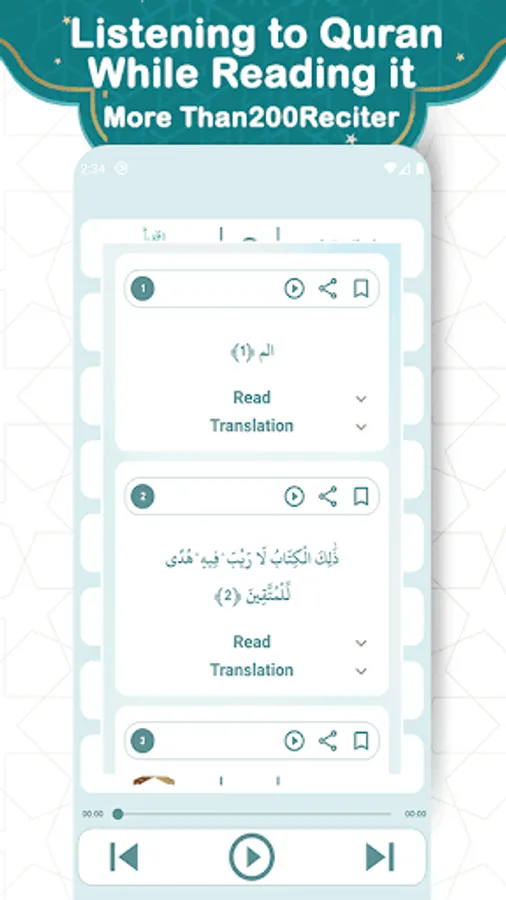 In this section you can listen to the Quran with more then 100 reciters from all over the world and also you can download the Quran with your favorite reciter do listen to it without Internet later and also you can read the Surah at the same time why are you listening two the reciter