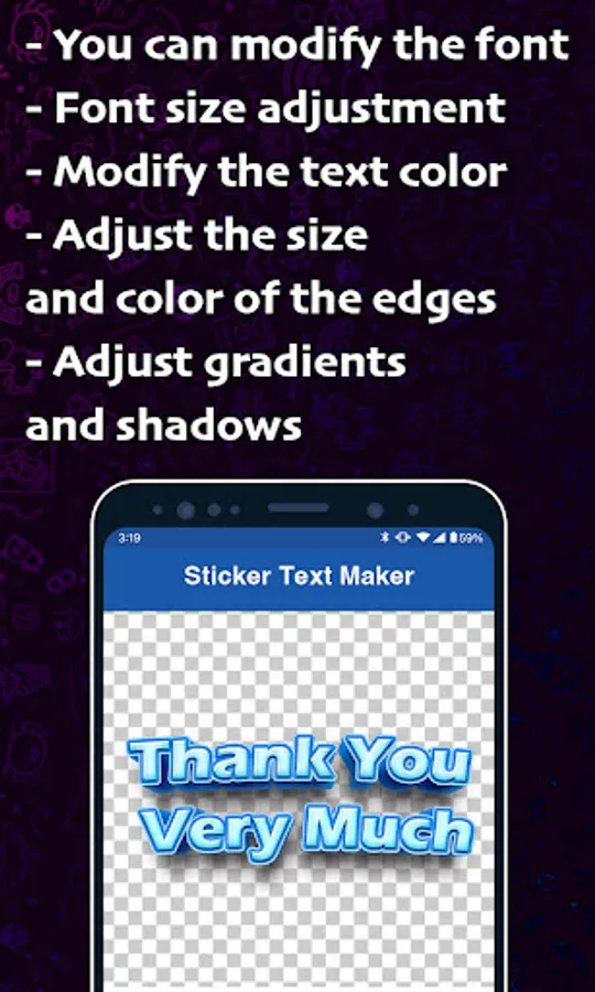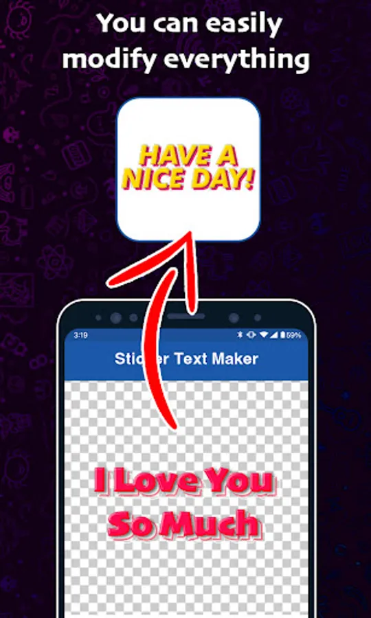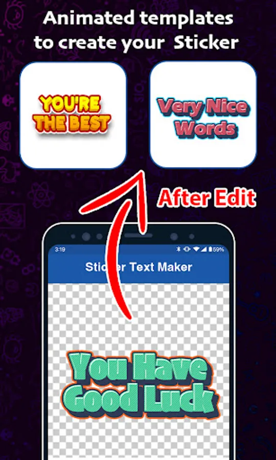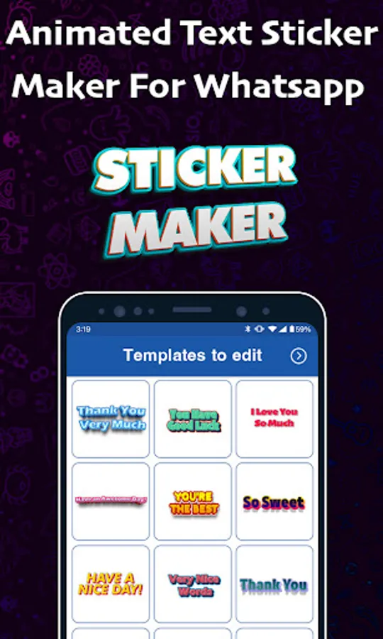 Create beautiful WhatsApp stickers in seconds by choosing a pre -ready template in the application and then add your text, change the line and add the text and add them to the stickers and export them to WhatsApp with one click