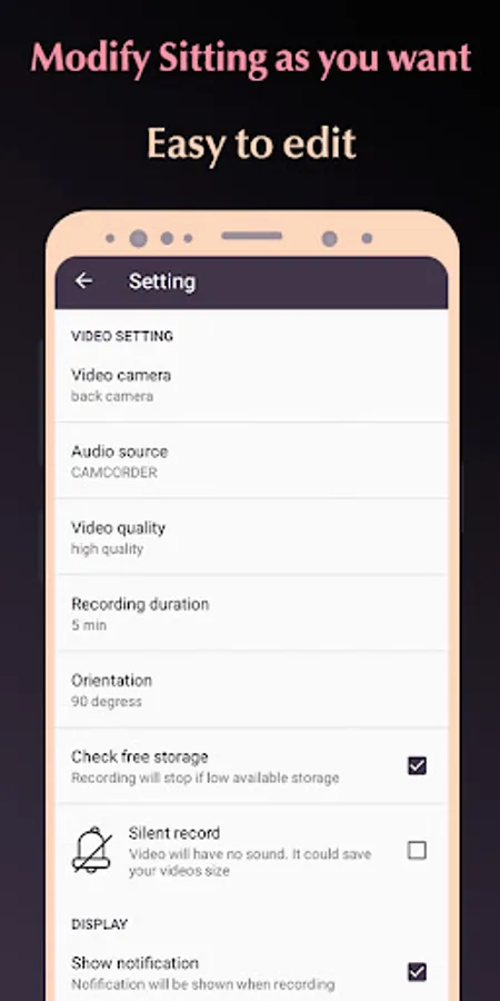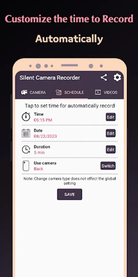 If you want to record videos in background just like hidden camera video recorder even phone screen is off. With this app can record video using front or back camera. With exclusive features such as setting a time when recording begins and more.
