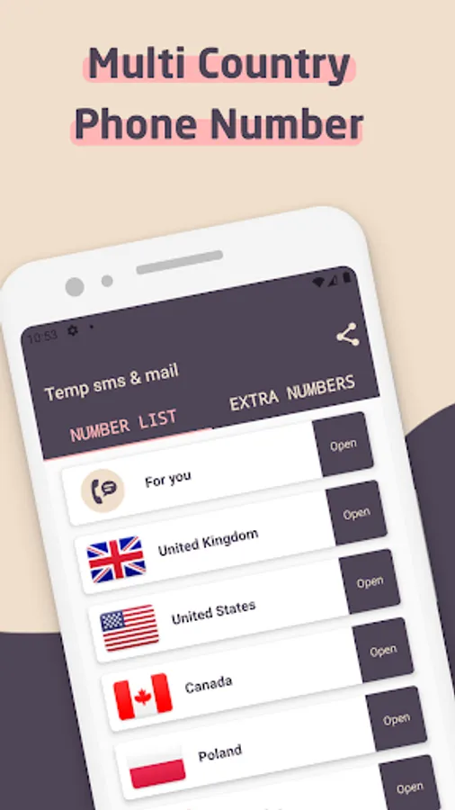 This application will provide you with virtual numbers that you can use to register in websites and applications