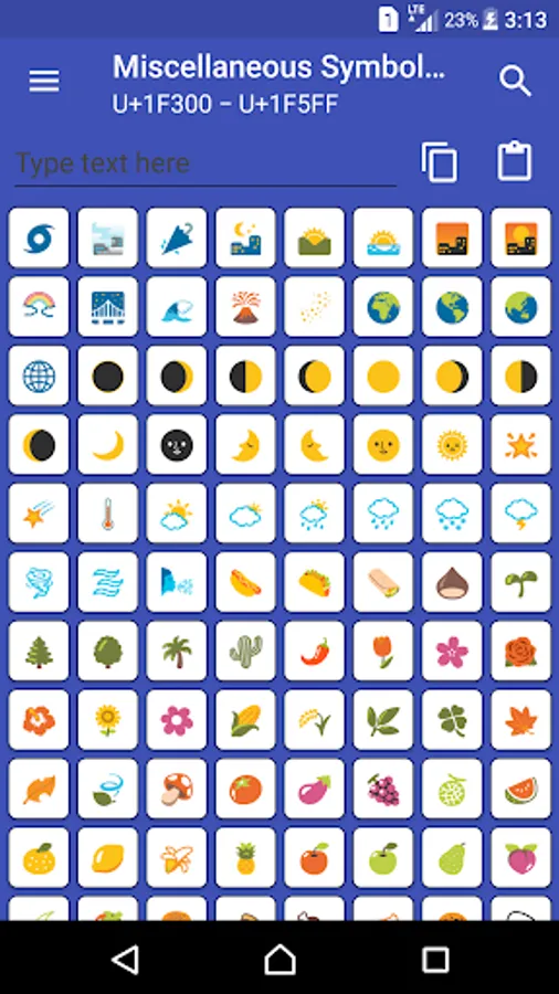 Not all characters will be readable on some Android devices especially the old ones running old Android versions due to the lack of some characters in the system fonts. If you copy any character and paste it anywhere else and it appeared as or �, this means that your device doesn't contain that character in the Android system fonts. Unfortunately, we as developers, can never fix it because we can't control how it is shown to you.