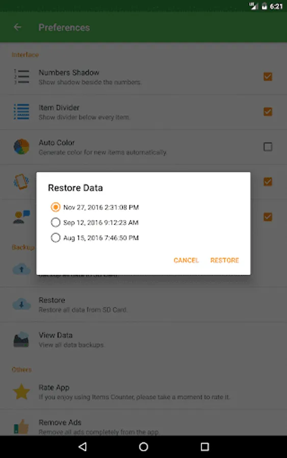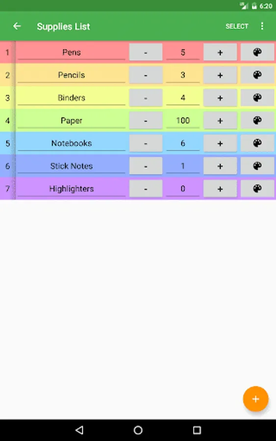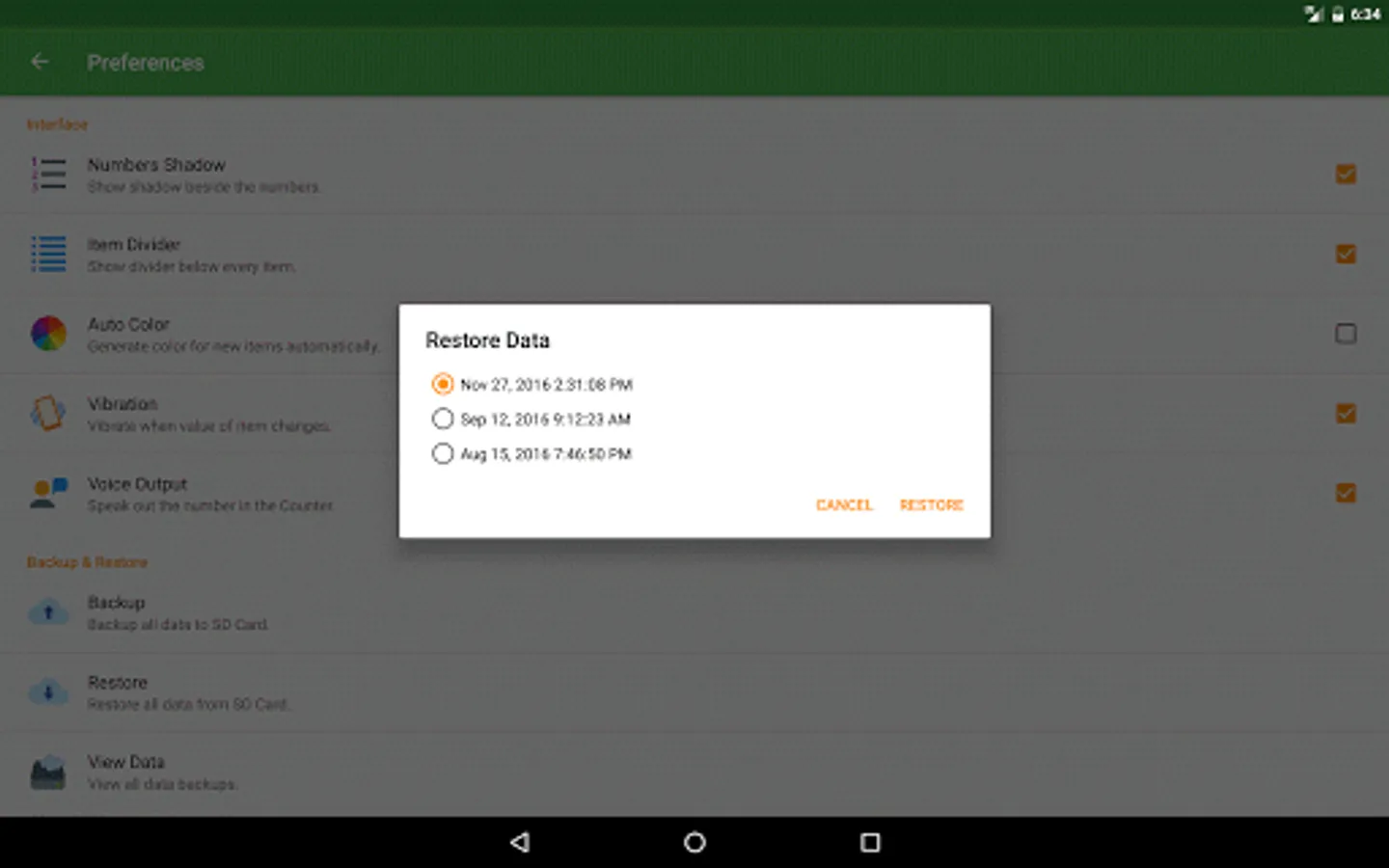 Use this app to count anything from inventory, supplies, customers, laps ... to scores or votes. It makes counting easier. You can create many lists with their own items. Each item has its unique name and value. Moreover, you can set a unique color for each item individually. It also has the ability to export data to CSV files. And if you need to backup data, you can create many backup files as much as you want and restore any one of them anytime you want.