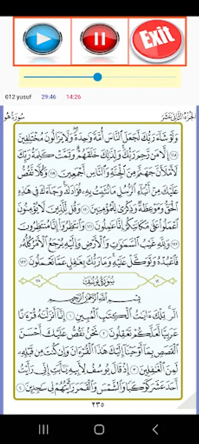 ✅ Audio recitation of each surah offline.