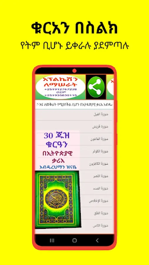 ይህ አፕ እንደዚህ በተዋበ መልኩ የተዘጋጀው በዶክተር ሁሴን ኡመር ሲሆን መሠል የቁርአን መማሪያ ፣ የሐዲስ መማሪያ እንደዚሁም የተፍሲር አፕልኬሽኖችን በትእዛዝ እናዘጋጃለን በዚህ ስልክ 251912767238 ያገኙናል ።