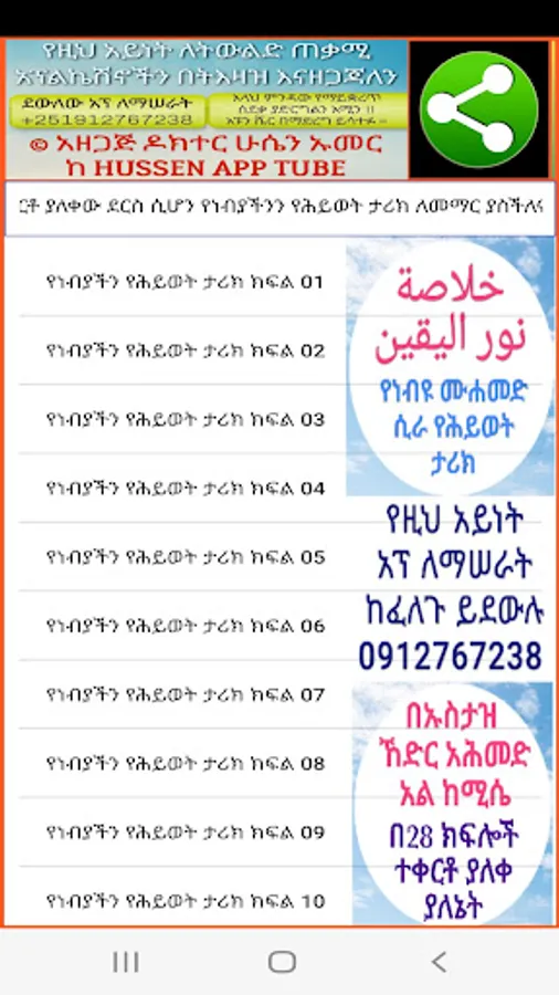 - Similarly, if you want to make the books, tafsirs, and muhadoros that have been left by various teachers of Suna in the form of an application, and upload them to Playstore, please contact us on this phone number +251912768238.
