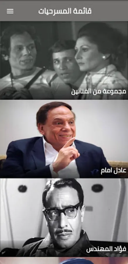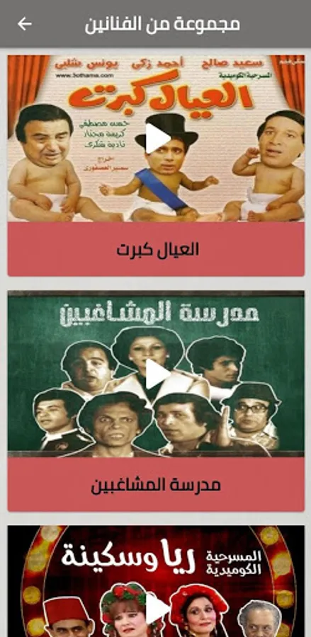 These plays are by famous comedians such as Adel Imam, Samir Ghanem, Muhammad Najm, Muhammad Sayhi, Duraid Lahham, and Syed Zayan.