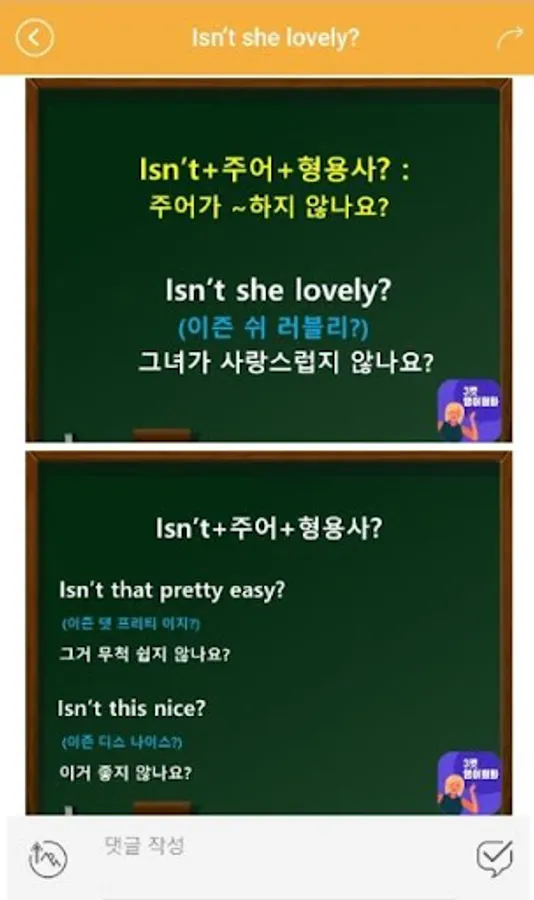You can practice through the simple and intuitive 3 cut images. If you look at the pronunciation on the blackboard and listen to the voice of a native speaker, it will be enough to learn without burden.