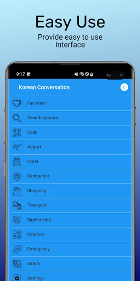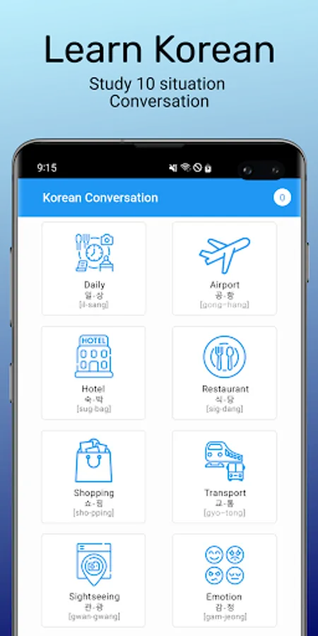 Korean Conversation is an app for Android users that helps you understand Korean. Are you planning a trip to Korea? We have just what you need to prepare for your adventure! Our platform offers a wide range of essential Korean conversations during your travels and Korean vocabulary. Even if you don't speak a word of Korean, you can easily find the sentences or words you need and practice saying them and learn Korean for free.