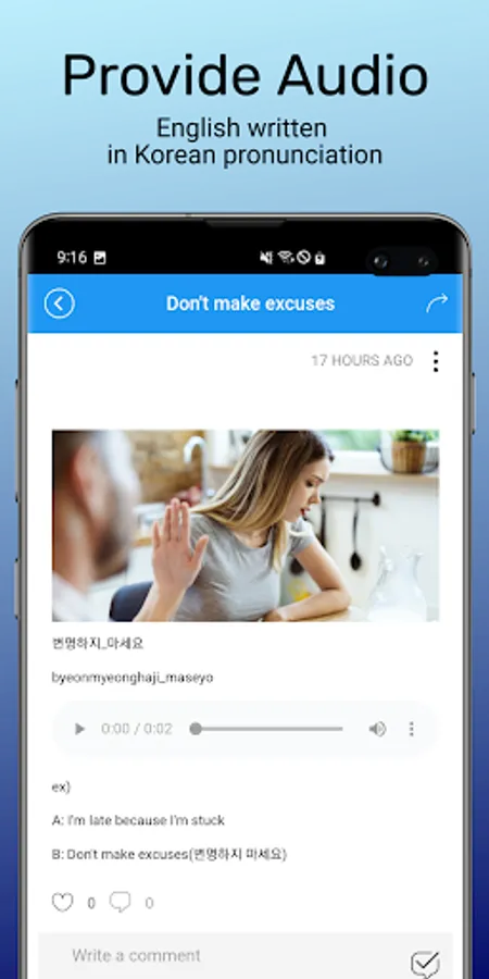 Korean Conversation recognizes that language is changing and evolving. That's why we make it a priority to keep our database updated with relevant sentences. Whether you need to order food, ask for directions, or go shopping. Say goodbye to language barriers and feel empowered to communicate effectively in your day-to-day interactions.