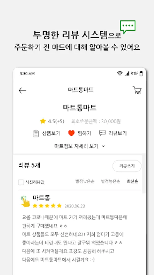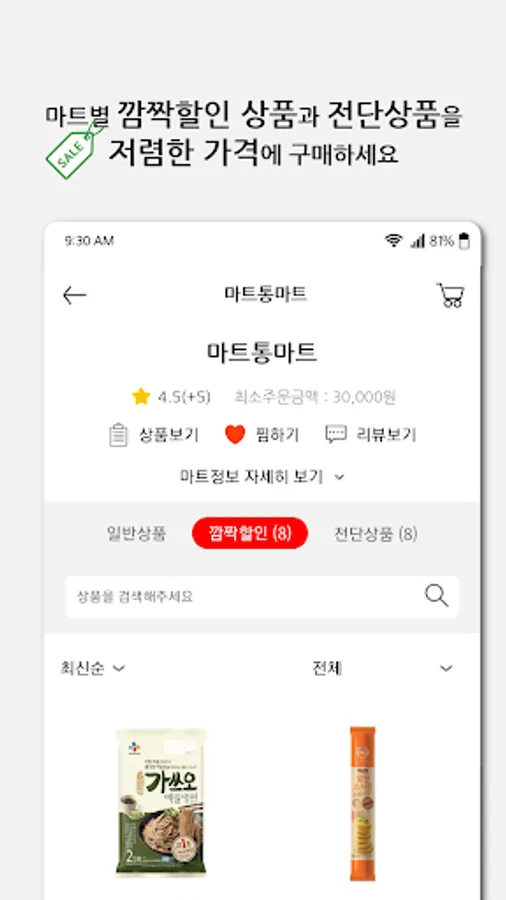 ★ You can order all products of the mart, such as vegetables / fruits / meat / fisheries, conveniently and cheaply through the app.