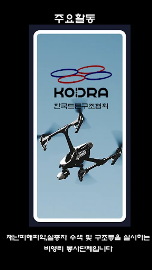 The Korea Drone Rescue Association is a non-profit volunteer organization that is operated with membership fees and sponsorship fees.