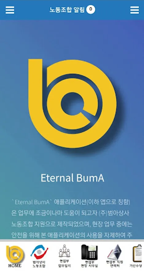 This application was created with the support of the Beom-A Trading Co., Ltd. labor union, and please refrain from using this application for safety during work.