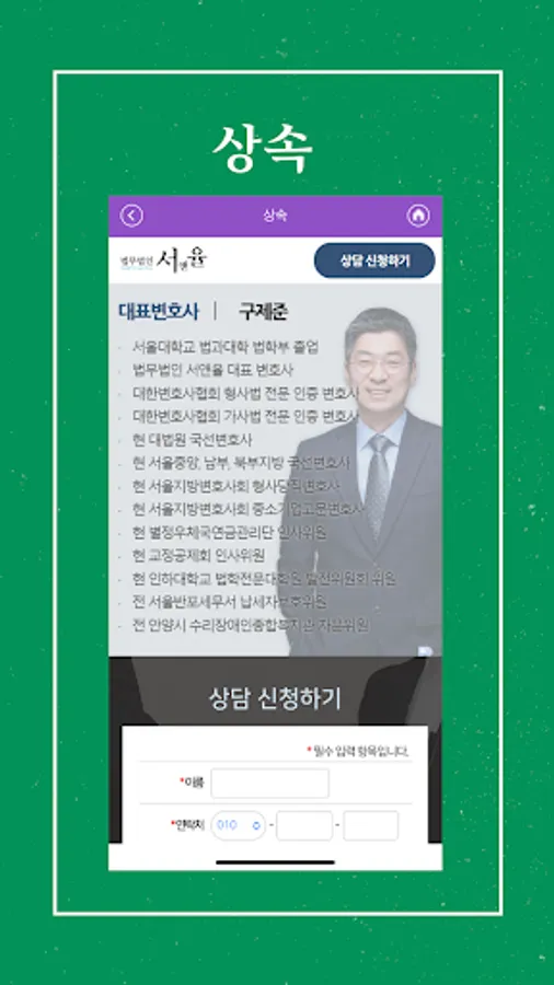 - Major inheritance services: claim for division of inherited property, claim for return of retained portion, adult guardianship, inheritance renunciation/limited approval, inheritance for Korean nationals residing abroad