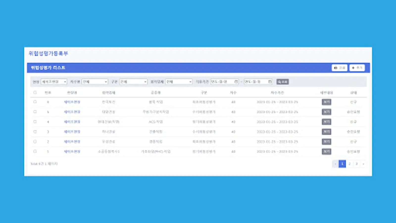 With KOSHA-MS-based safety work support, we support systematic safety and health activities by configuring action plans (Plan), implementation and operation (Do), and inspection and corrective action (Check) functions.