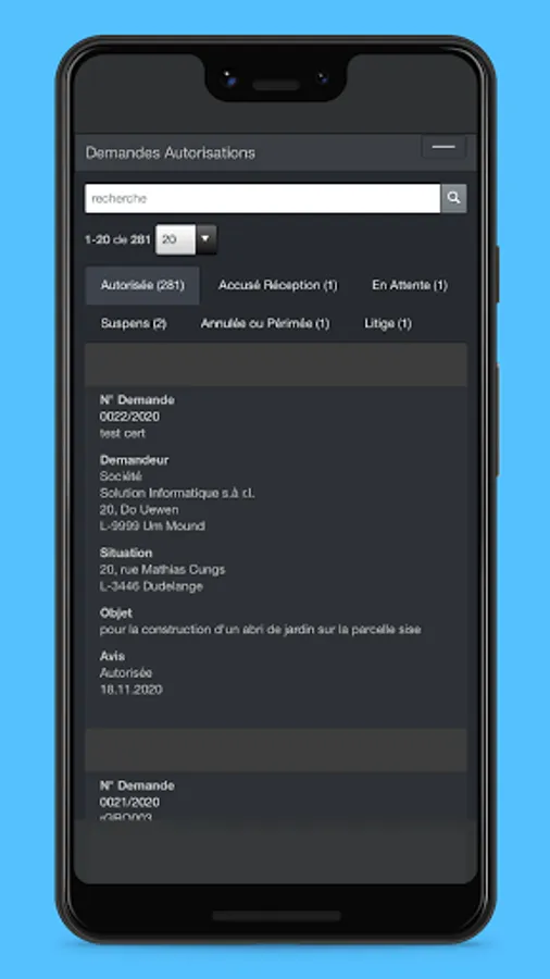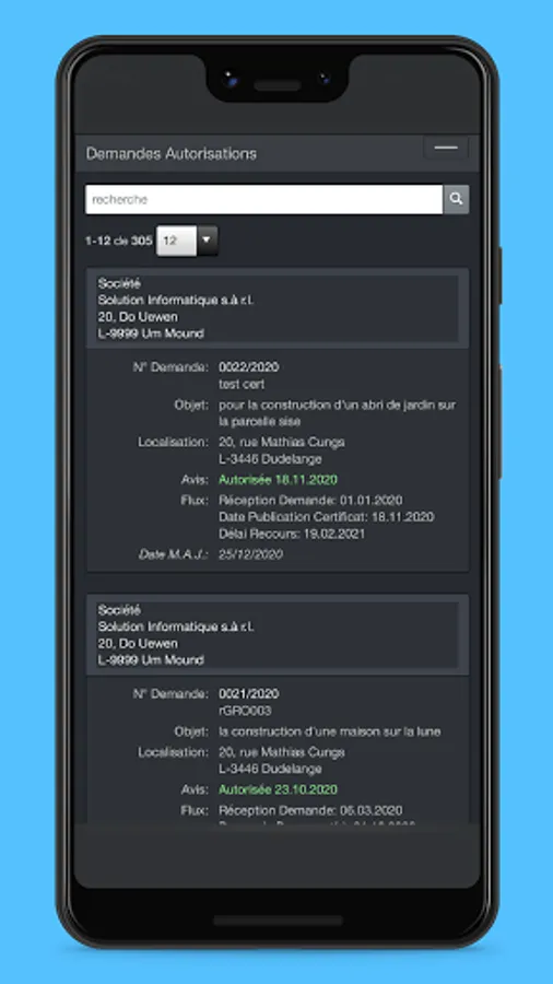 APP allowing the consultation of authorization requests by the managers of a municipal administration.