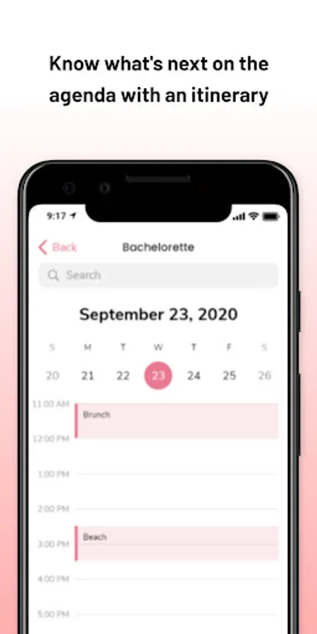 - Calendar for adding all bridal events (bridal shower, engagement party and bach - add whatever your group needs)
