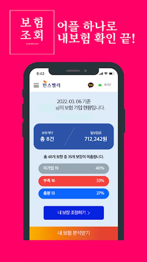 Find insurance contracts for me and my family, and see insurance details and payment information at a glance~